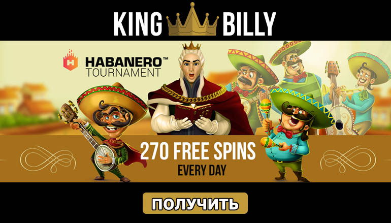 Хочешь выигрывать каждый день крутые подарки, словно истинный король? Зарегистрируйся в казино Кинг Билли и прими участие в ежедневной промо акции! Она принесет тебе 270 фриспинов каждый день в Королевском турнире от казино Кинг Билли! Все, что от тебя требуется, это пополнить игровой баланс и играть на слотах от Хабанеро.
