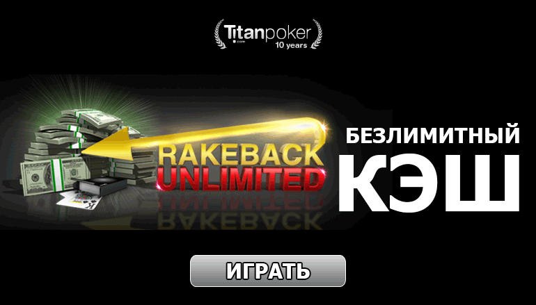 Играй в онлайн покер по-простому и сосредоточься на том, что действительно важно, вместе с безлимитным рейбеком (Rakeback Unlimited)! Titan Poker рад предоставить тебе эксклюзивную и уникальную промо акцию онлайн азартных игр, благодаря которой ты сможешь увеличивать свой банкролл каждую неделю за счет безлимитной кэш-выплаты!
