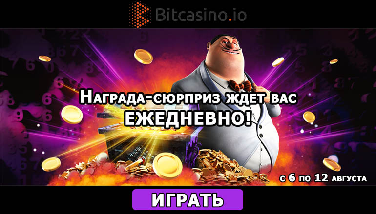 Хочешь каждый день пополнять свой кошелек биткоинами? Зарегистрируйся в казино БитКазино и стань участником промо акции, которая ежедневно будет приносить тебе денежный выигрыш. Пополни кошелек и играй каждый день в любые игры этого онлайн заведения. Предложение действует с 6 по 12 августа 2018 года, и самых активных его участников будут ждать денежные призы!