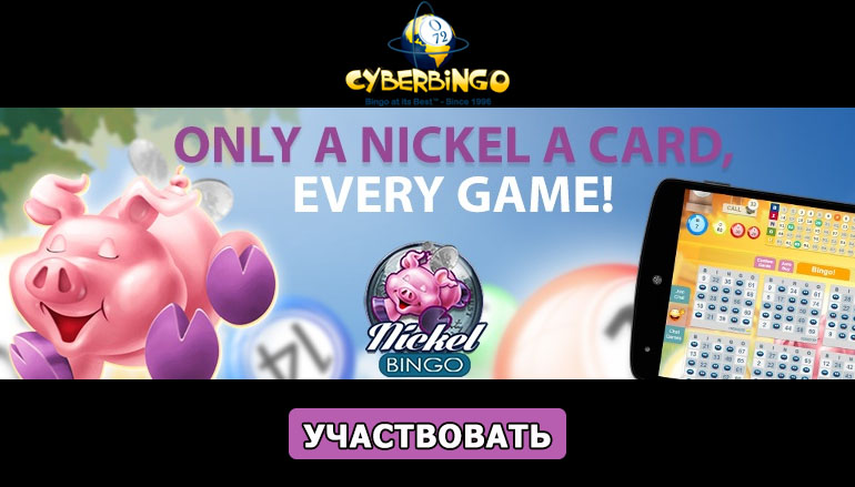 Не жди особого случая, ведь он уже наступил! Зарегистрируйся в Кибер Бинго прямо сейчас и принимай участие в ежедневных розыгрышах и лотереях этой онлайн бинго комнаты! Игроков каждый день ожидают в комнате Никель (Nickel Bingo) в период с 20:00 по 04:00 по московскому времени.