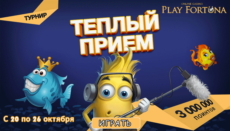 На этот раз казино Плей Фортуна (Casino Play Fortuna) решило так и назвать свой новый турнир – «Теплый прием». Как Вы уже могли догадаться, здесь Вам всегда рады! Принимайте участие в соревновании и поднимайтесь по турнирной таблице. Ваша задача — попасть в топ-20! Двадцатка лучших участников разделит между собой призовой фонд в 3 миллиона поинтов! Получайте призы в турнире «Теплый прием» от казино Плей Фортуна!