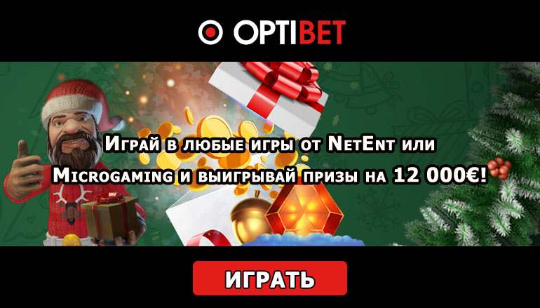 Казино Оптибет (Optibet Casino) объявляет о запуске рождественской акции под названием Festive Slot Race, где будут разыграны щедрые денежные призы. С 12 по 23 декабря участвуйте в увлекательном соревновании, где Вас ждут красочные слоты от двух лучших разработчиков игрового софта – НетЕнт (NetEnt) и Майкрогейминг (Microgaming). Играйте в любимые видеослоты и получайте рождественские подарки на 12 тысяч евро от казино Оптибет!