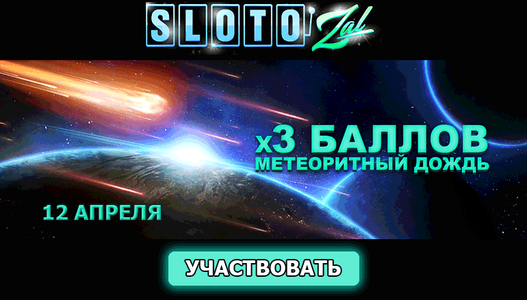 Чем больше баллов, тем больше у Вас возможностей, ведь баллы можно затем обменять на реальные деньги. 12 апреля Вас ждет самый красивый, зрелищный и прибыльный метеоритный дождь! Ну а если Вам интересны и другие бонусные предложения данного игорного заведения, ознакомьтесь с нашим обзором казино Слотозал.