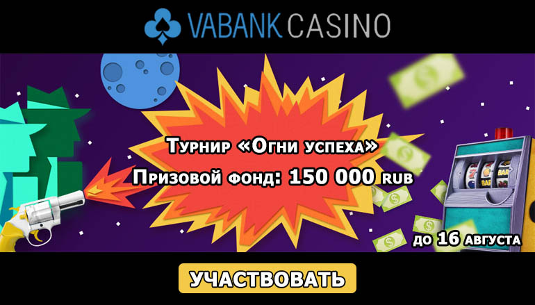 Если тебе по душе громкие вечеринки, интересные конкурсы и щедрые призы, то добро пожаловать на страницу онлайн казино ВаБанк (Va-Bank casino). Здесь огни больших городов зажигаются каждый день для настоящих ценителей онлайн азартных игр. Прими участие в специальном предложении и получи незабываемый двухнедельный кутеж и 150 тысяч рублей в промо акции «Огни успеха» от казино ВаБанк! Такой шанс выпадает только однажды, и этот момент наступил!