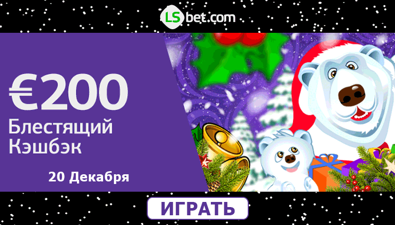 Зима всегда радует нас своим волшебством, добротой и чудесами. К нам приходит праздник, а вместе с ним и подарки от сайта онлайн казино ЛСбет (LSbet casino)! С каждым новым днем тебя здесь ждут новые бонусные предложения. Они принесут особенные впечатления, массу положительных эмоций и щедрые вознаграждения. На этот раз ты можешь получить 20% Кэш Бонус 200 евро в казино ЛСбет!