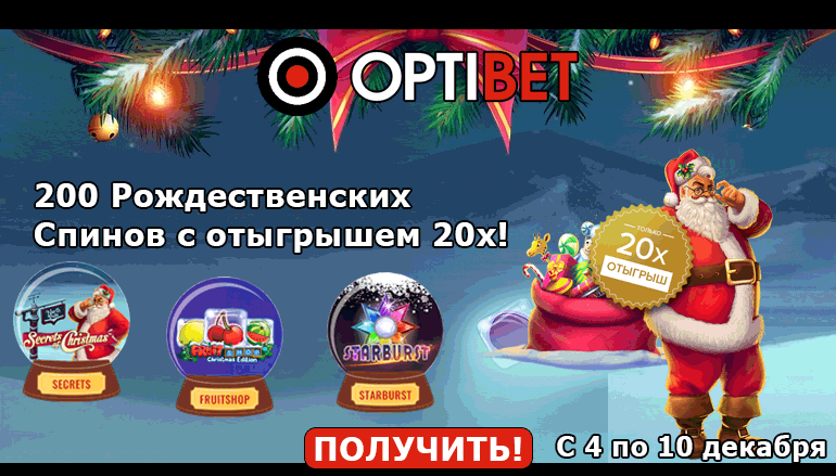 Как получить 200 Рождественских спинов в казино Оптибет?