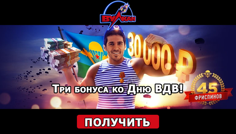 Как получить 3 бонуса ко Дню ВДВ от казино Клуб Вулкан