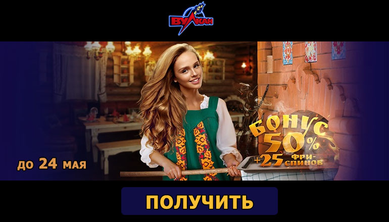 Как получить 50% бонус и 25 фриспинов от казино Клуб Вулкан