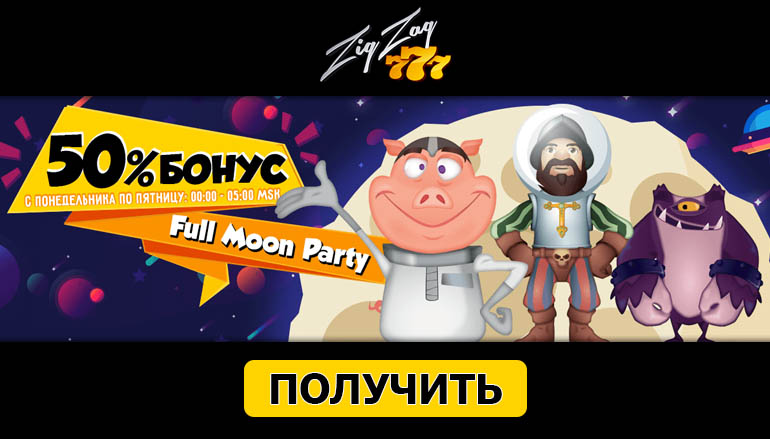 Как получить 50% бонус под полной луной в казино ЗигЗаг 777