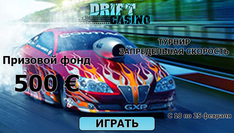 Гонки Формула 1 являются самыми популярными в мире. Там гонщики развивают очень высокие скорости. Если Вы тоже любите быструю езду, но нет возможности сесть за руль гоночного болида, не расстраивайтесь. Для любителей экстрима казино Дрифт (Drift Casino) запускает новый турнир «Запредельная скорость». Не упустите шанс насладиться быстрой ездой и получить до 500 евро в турнире «Запредельная скорость» от казино Дрифт!