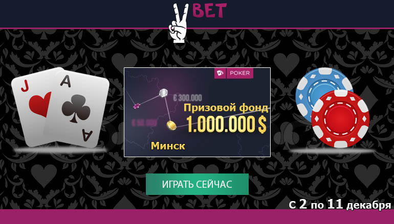 Сo второго по одиннадцатое декабря Вбет Покер наряду с Российским Покерным туром (Russian Poker Tour) проведет серию крупных турниров в столице Белоруссии, Минске. Призовой фонд в размере 1 миллиона долларов не оставит равнодушным никого. Ты можешь стать его обладателем, участвуя в онлайн сателлитах. Играй сейчас, и билет на международный покерный турнир в Минске от Вбет достанется именно тебе!