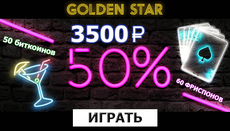 Как правило, человеку для большей мотивации помогают выгодные условия. Они всегда приносят удовольствие от проделанной работы. Об этом помнит сайт онлайн казино Голден Стар, который не забывает баловать своих игроков различными подарками и новыми предложениями. Испытай это на себе, и прими участие в промо акции выходного дня. Ты получишь бонус 50% до 3500 рублей, 60 фриспинов или 50 биткойнов от Голден Стар!