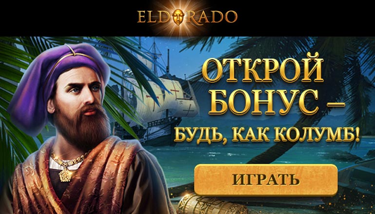 Казино Эльдорадо24 (Eldorado24 Casino) предлагает Вам отметить высадку в Новом Свете мореплавателя Колумба, приняв участие в увлекательном турнире. С 9 по 14 октября присоединяйтесь к участникам новой промо акции, приуроченной к торжественному событию, и получайте специальный бонус от Колумба в казино Эльдорадо24. Не упустите возможность получить до 15 тысяч рублей на бонусный счет! Почувствуйте себя первооткрывателем и заберите свою заслуженную награду. Пусть Ваш корабль на полных парусах мчится к победе и крупным выигрышам!