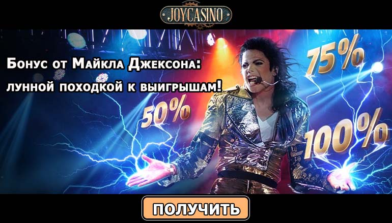 Ко дню рождения короля поп-музыки Джойказино (Joycasino) запускает новую промо акцию, в которой ни один участник не останется без приза. С 19 по 29 августа Вы можете почтить память легендарного исполнителя, приняв участие в турнире, посвященном юбилею Майкла Джексона. Присоединяйтесь к участникам промо акции прямо сейчас! Прогрессивный бонус в три этапа ждет всех, кто хоть раз пытался повторить лунную походку!