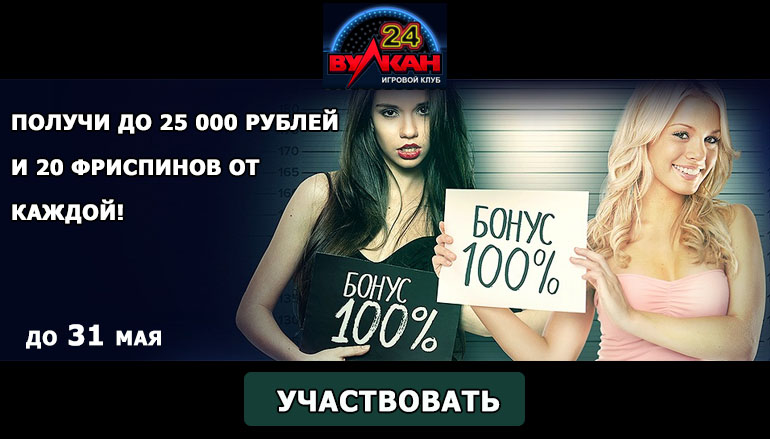 С 28 по 31 мая включительно принимайте участие в новой промо акции, и получайте призы и подарки! Вас ждут потрясающие бонусы от блондинки и брюнетки в казино Вулкан24! Вам не придется выбирать кому же отдать предпочтение, забирайте оба бонуса! Каждая из них с радостью подарит Вам 100% на депозит и 20 фриспинов!