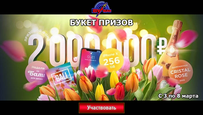 Как получить букет призов в лотерее к 8 марта от казино Клуб Вулкан