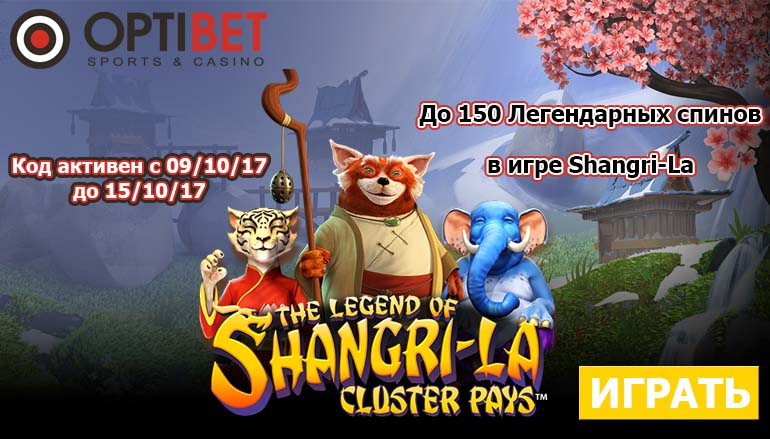 Ты можешь получить до 150 спинов в игре «Шангри-Ла» в казино Оптибет только на этой неделе! Предложение действует с 9 октября и завершится в полночь 15 октября. Твой выигрыш будет начислен на игровой аккаунт в течение 48 часов. Не упусти свой шанс и не будешь разочарован! Дерзай!