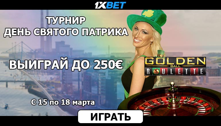 Тебя уже привлекло предложение отметить день Святого Патрика? Зарегистрируйся в казино 1хБет, чтобы получить доступ ко всем азартным развлечениям этого сайта! Сделай вложение и начни играть в лайв казино за столами Golden Ball! Тебя будут ждать 20 раундов! А по итогам 19 раундов за каждую победу тебе начислят десять баллов. Кроме того, за каждые выигранные 20 евро ты получишь 30 дополнительных баллов. Чем больше баллов ты сумеешь набрать, ты выше будет твое место в турнирной таблице, а значит выше денежный приз!