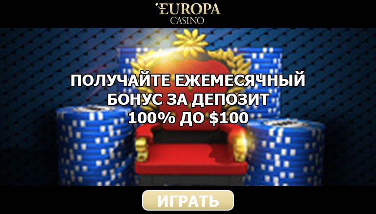 Получи ежемесячный бонус за депозит до 100 долларов от казино Европа!
