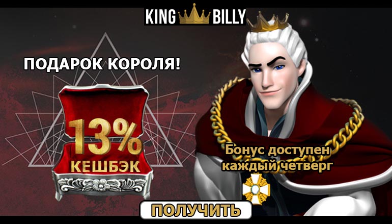 Как получить королевский 13% кешбэк бонус без отыгрыша от казино Кинг Билли?
