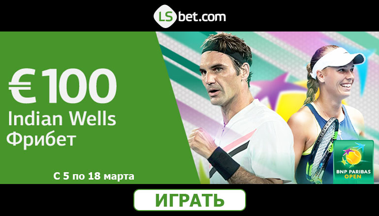Всех ценителей тенниса и игроков на сайтах онлайн ставок на спорт в России ждет специальное предложение «Теннисная жара в Калифорнии». Если хочешь забрать свою часть щедрого приза, не пропусти промо акцию онлайн казино! Тебя готов порадовать лояльный фрибет бонус 100% за ставку на теннис от ЛСбет Спортс (LSbet Sports)! С онлайн букмекером просмотр долгожданного турнира Индиан Уэллс (BNP Paribas Open 2018) может принести не только визуальное удовольствие, но и материальный достаток.