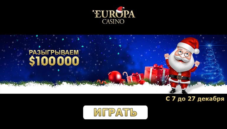 Успей стать участником крупного розыгрыша, который проходит на сайте онлайн казино Европа (Europa casino). В акции «На кону 100 000 долларов» ты можешь выиграть денежные призы, бонусные бесплатные спины, бонусы Золотая Фишка и многое другое! В канун Нового года и Рождества сказка и волшебство кружатся не только в воздухе, но и на сайтах любимых игорных операторов, которые могут воплотить все твои мечты в жизнь! Призы разыгрываются каждую неделю до конца этого месяца! Успей отхватить и для себя что-нибудь!