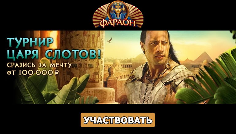 Стань царем слотов и получи крутые денежные призы в новой промо акции от казино Фараон Бет (Pharaon Bet Casino). Битва за трон в новом слото-турнире от популярного онлайн казино уже началась. Но учтите, успех в новом азартном предприятии будет зависеть не только, и не столько от Вашего опыта и игровых навыков, сколько от воли к победе. Итак, завоюйте статус победителя по версии Всемирной ассоциации слотов и станьте царем слотов в новой акции! Турнир стартует 29 апреля и продлится до 3 мая включительно.