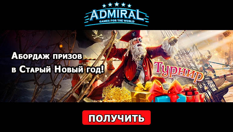 Для того, чтобы продлить праздники щедрыми новогодними подарками, участвуйте в новой промо акции от казино Адмирал 777! С 7 по 13 января присоединяйтесь к турниру в честь Старого Нового года и боритесь за призовой фонд соревнования. Банк будет постоянно расти, а стартует он со 100 тысяч рублей. Присоединитесь к гонке за деньгами уже сейчас и получайте потрясающие призы в Старый Новый год от казино Адмирал 777!
