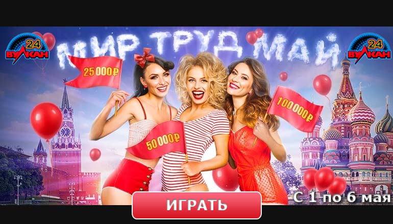 1 мая во многих странах мира отмечается международный праздник — День труда. Этот светлый праздник весны и труда многие предпочитают отмечать на природе. Но майские праздники Вы можете не только провести с друзьями за приготовлением шашлыков, но и заработать неплохие деньги. Казино Вулкан24 (Vulkan 24 Club Casino) предлагает Вам принять участие в новой потрясающей акции. Не упустите возможность получить целых три бонуса к Первомаю от казино Вулкан24!