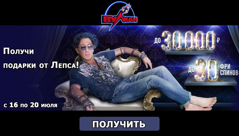 Как получить три бонуса от Лепса в казино Клуб Вулкан