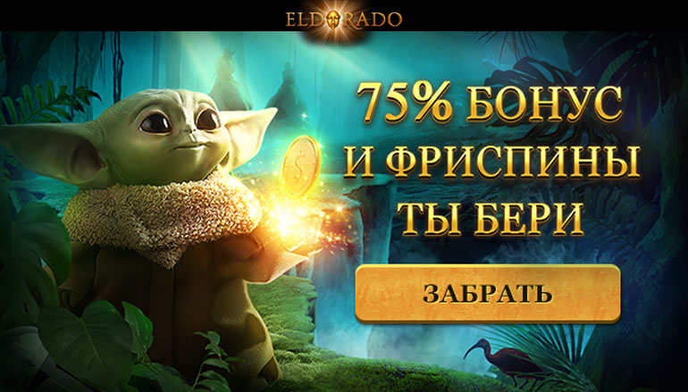 В период с 24 по 29 февраля участвуйте в новой увлекательной промо акции и получите призы от малыша Йоды в казино Эльдорадо24. Пополняйте свой игровой счет и забирайте 75% от внесенной суммы, а также 50 фриспинов. Не упустите возможность воспользоваться этим выгодным предложением! Забирайте бонус и разбудите в себе Силу привлечения выигрышей!