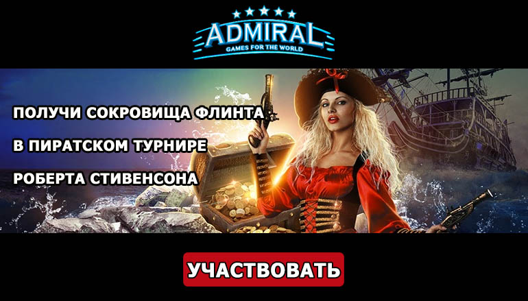 В казино Адмирал 777 (Casino Admiral 777) обнаружена карта острова сокровищ. Экспедиция уже готова отправиться на поиски клада. На корабле всего пятнадцать мест, предназначенных для победителей турнира ко дню рождения Роберта Стивенсона. Успейте запрыгнуть на борт!