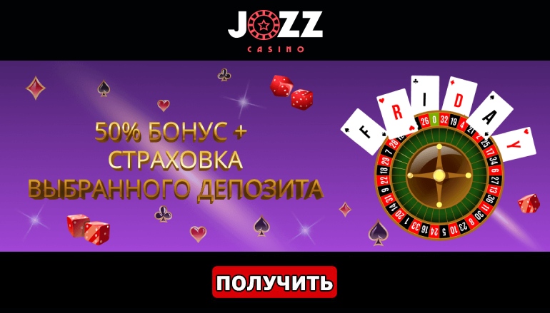Теперь пятница – это не только день походов в кафе, ресторан и кинотеатр, встреч с друзьями, прогулок в парке на свежем воздухе. Список приятных пятничных мероприятий пополнился еще одним событием – регулярной промо акцией от казино Джозз. Принимайте участие в пятничной акции и забирайте 50% бонус на любой депозит, а также страховку в подарок. С этими щедрыми призами Ваши пятницы станут еще более долгожданными, радостными и яркими!