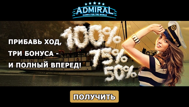 Как получить три бонуса от казино Адмирал 777 ко Дню парохода