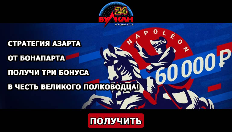 Как получить три бонуса от Наполеона в казино Вулкан24