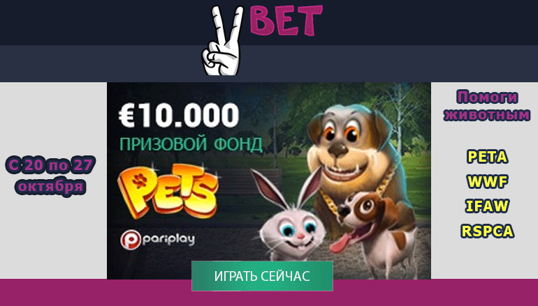 Известный производитель онлайн азартных игр Париплей (Pariplay) решил организовать специальную промо акцию онлайн казино в помощь животным. Эта благотворительная акция направлена на поддержку организаций по защите животных. Причем, какой именно, выберешь сам. Предложение от сайта онлайн азартных игр Вбет (Vbet) PETS Pawsitively Purrfect выгодно обеим сторонам: и друзьям нашим меньшим, и нам. Они получат необходимую помощь, а ты до 10 000 евро от сайта онлайн казино Вбет.