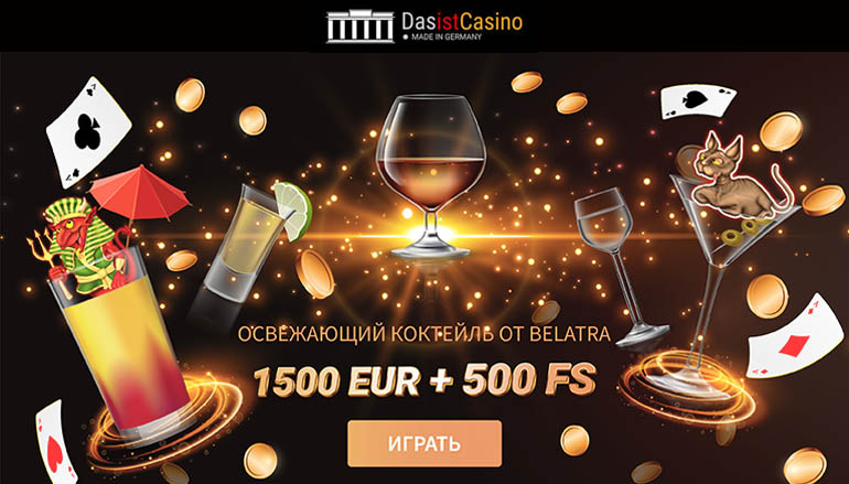В казино Дас Ист (Das Ist Casino) проходит летняя вечеринка, где Вы сможете расслабиться с освежающим коктейлем игр от Belatra. До 1 сентября играйте в свои любимые слоты популярного провайдера и получайте призы и подарки. Не упустите возможность не просто наслаждаться игрой на увлекательных видеослотах, но и заодно выиграть часть призового фонда, который составляет 1500 евро и 500 фриспинов! Отведайте «Освежающий коктейль от Belatra» в казино Дас Ист и забирайте свою заслуженную награду!
