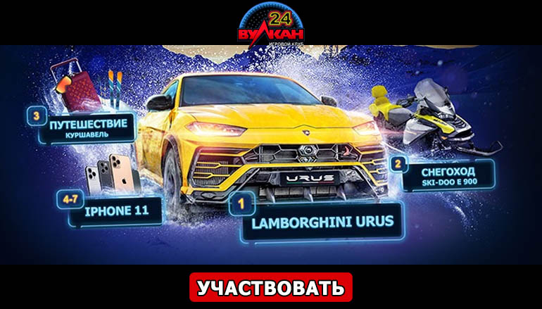 По итогам серии турниров десять победителей получат призы: автомобиль Lamborghini URUS 2019, снегоход SKI-DOO EXPEDITION LE 900 ACE, путевку на горнолыжный курорт Куршевель L’Apogée Courchevel на двоих, а также смартфоны iPhone 11 Pro Max 512Gb и iPhone 11 Pro 256Gb. Посетите все станции Куршевеля вместе с казино Вулкан24 и отпразднуйте Новый год на вершине турнирной таблицы в окружении суперпризов!