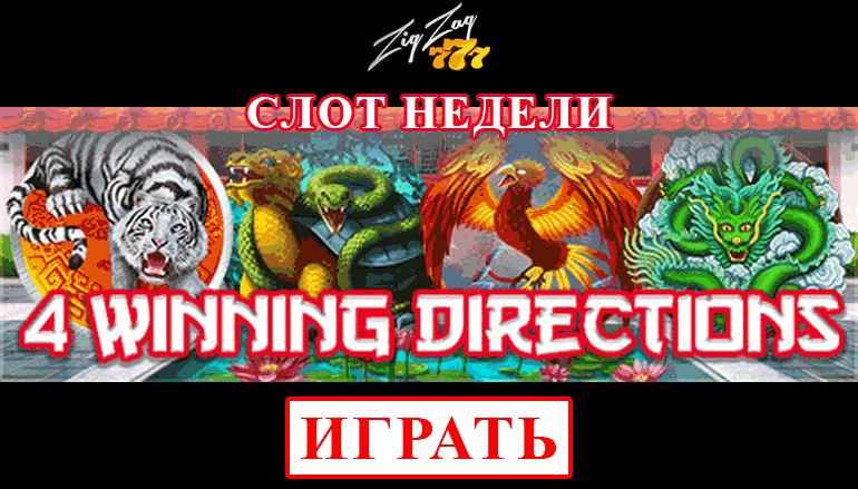 Только 10 самых активных игроков получат призы от казино ЗигЗаг 777! Выигрыши будут зачислены в течение суток после завершения турнира. Поспешите, турнир «Слот недели» стартовал в понедельник, 9 октября, и завершится в воскресенье, 15 октября. Играйте в загадочный слот с восточной тематикой «4 Winning Directions» и получайте часть призового фонда в 5 тысяч поинтов от казино ЗигЗаг 777!