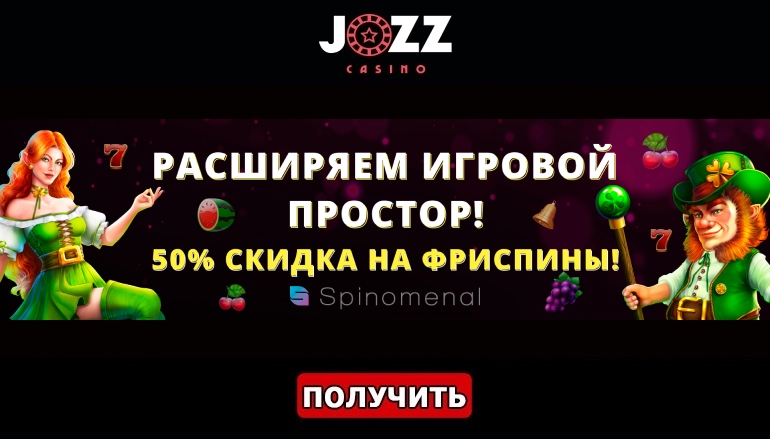 В период 24 ноября по 1 декабря заходите на сайт казино Джозз казино (Jozz Casino) и участвуйте в промо акции от провайдера Spinomenal. Не упустите возможность купить фриспины с 50% скидкой в игровых слотах популярного разработчика! Скорее присоединяйтесь, Вас ждут фантастические скидки и головокружительно азартный геймплей!