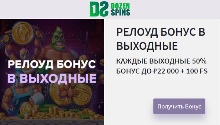 Как получить релоуд бонус в выходные в казино ДозенСпинс