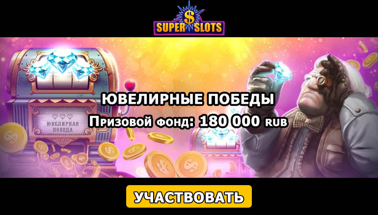 Поклонники азартных игр имеют возможность присоединиться к всеобщему торжеству приняв участие в праздничной акции «Ювелирные победы» от Супер Слотс (Super Slots Casino). И пусть здесь не раздают украшения, но отличившиеся участники турнира смогут приобрести желаемые украшения на щедрые призовые. Не упустите возможность совместить приятное с полезным, и включайтесь в гонку за ценными призами прямо сейчас!