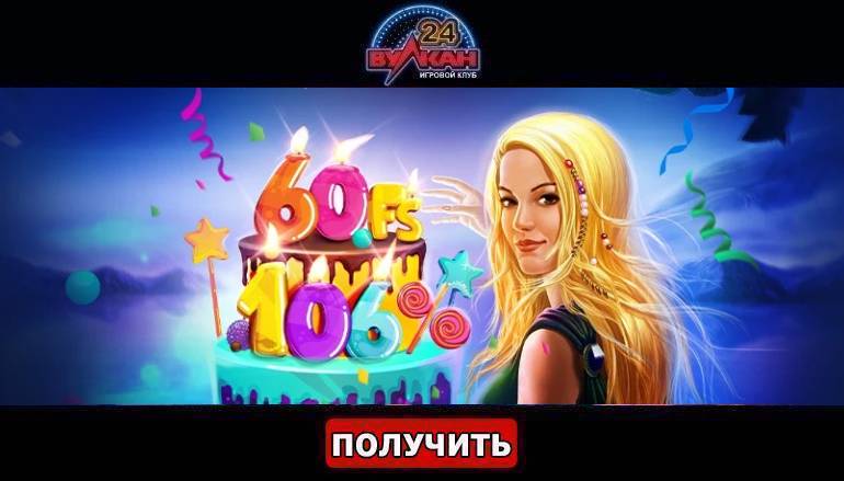 Онлайн казино Вулкан24 исполнилось 6 лет! В честь этого радостного события игорный клуб организовывает крутую вечеринку с фейерверками азарта и выигрышами, выпрыгивающими из торта. Ну и как же без угощений — каждому гостю виртуального заведения достанется в подарок 106% бонус и 60 фриспинов. Не упустите возможность поздравить с днем рождения казино Вулкан24 и заодно получить щедрое вознаграждение!