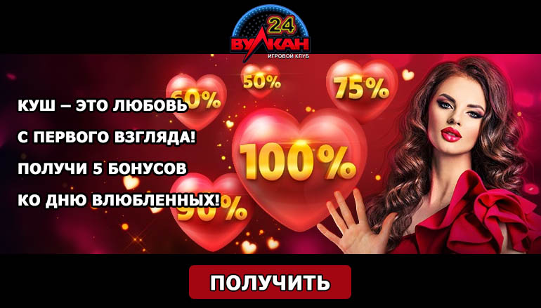 В этом стремлении влюбленным поможет супер романтическое предложение от казино Вулкан24 (Vulkan 24 Club Casino). Не стоит бессмысленно разорятся на дорогие походы в роскошные рестораны, цветочные букеты и прочую «розовую атрибутику» попробуйте проявить оригинальность, выйдите за рамки стандартного мышления. Наверняка, Ваша половина оценит Вашу находчивость! Итак, все поклонники сайтов онлайн азартных игр могут воспользоваться шансом и получить щедрые бонусы ко Дню святого Валентина от казино Вулкан24. Простые условия предложения добавят шарма инициативе от популярного казино.