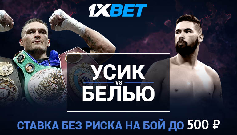 Популярный букмекер предлагает всем азартным бетторам проявить инициативу и, в этот раз, сделать свой прогноз на бой Усик — Белью. Изучите прогнозы специалистов БК и составьте свой приоритетный список. Помните при любом раскладе Вы ничем не рискуете. В случае проигрыша компания 1хБет спортс обязуется возместить потраченные Вами средства в размере до 500 рублей. Итак, смело делайте ставки на супер бой Усик – Белью и выигрывайте деньги.
