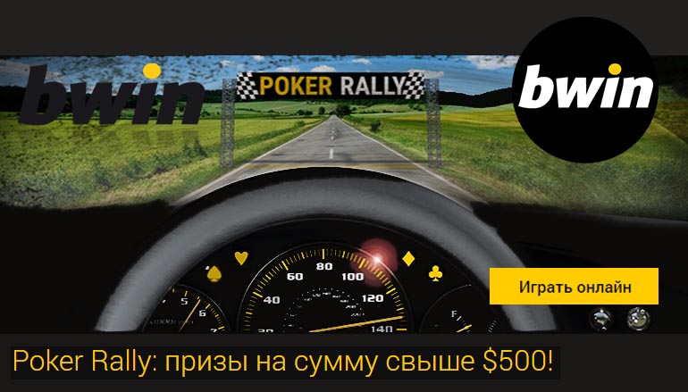 Участвуйте в «Покер Ралли» и мчите за денежным призом! Не сбавляйте темпа в новом турнире Бвин Покер и собирайте очки в Ваших любимых любых покерных играх! Регистрируйтесь уже в ближайший понедельник!