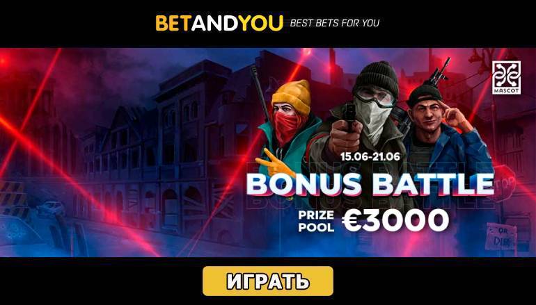 В период с 15 по 21 июня заходите на сайт БетЭндЮ (Betandyou) и участвуйте в захватывающем соревновании. Выбирайте любой из 11 турнирных слотов компании Mascot Gaming и активно играйте на реальные средства. Каждая ваша ставка будет вознаграждена турнирными баллами. Так что совершайте как можно больше ставок, набирайте максимальное количество баллов и занимайте одно из пяти призовых мест!