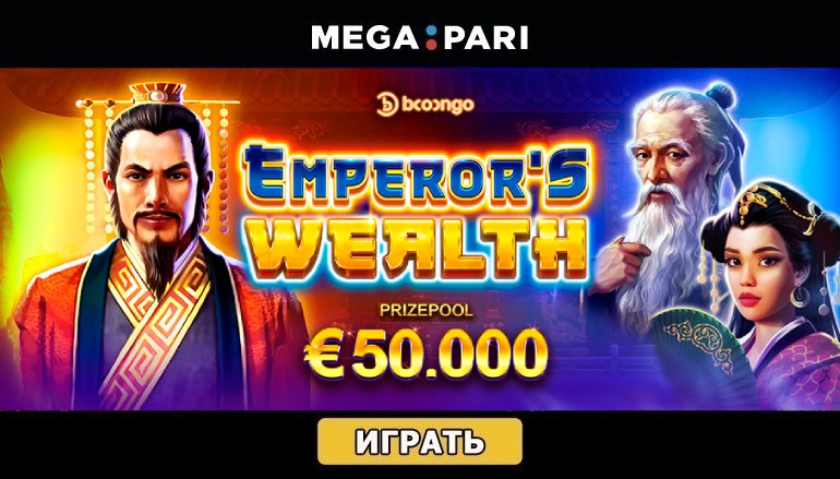 Богатый и могущественный император приглашает всех желающих посетить свое королевство в период с 25 февраля по 2 марта. В эти дни заходите на сайт Мегапари (Megapari) и наслаждайтесь потрясающими видеослотами провайдера Booongo в рамках турнира «Богатство императора». Среди самых активных и удачливых игроков будет разыгран призовой фонд размером в 50 тысяч евро! А победителя состязания ждет поистине королевское вознаграждение – 4 тысячи евро! Поспешите, и главный императорский подарок станет Вашим!