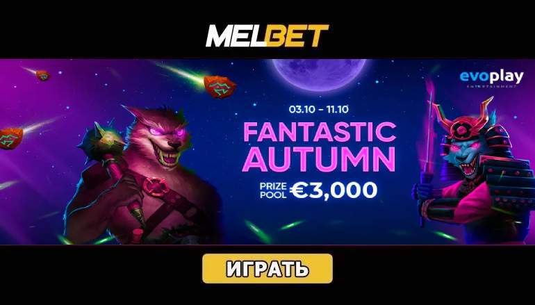 Хотя осенью дни становятся все более короткими и холодными, у вас нет ни единой причины грустить, ведь вас ждет просто фантастическое событие! Компания Evoplay подготовила для всех любителей красочных слотов кое-что особенное. Встречайте захватывающий турнир «Фантастическая осень» в Мелбет. Участвуйте в увлекательном соревновании и выиграйте часть призового фонда в размере 3000 евро, чтобы эта осень стала еще более умопомрачительной!