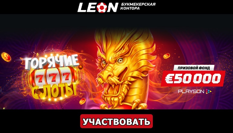 Популярный разработчик игровых автоматов Плейсон (Playson) запускает новый потрясающий турнир «Горячие слоты», в котором 250 счастливчиков разделят огромный призовой фонд размером в 50 тысяч евро. Любители игровых автоматов, в частности продукции компании Playson, с нетерпением ждали этого грандиозного соревнования. Скорее присоединяйтесь к турниру «Горячие слоты» в Леон Бет, чтобы успеть заполучить один из щедрых денежных призов. Не мешкайте, ведь впереди Вас ждут большие победы!